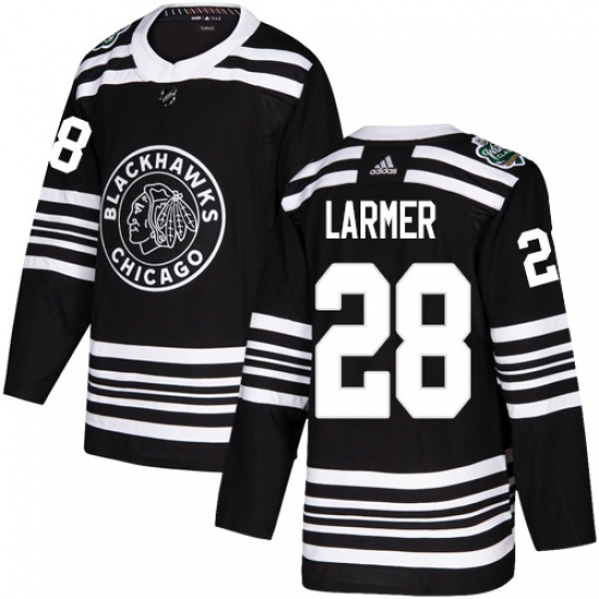 Men's Adidas Chicago Blackhawks #28 Steve Larmer Authentic Black 2019 Winter Classic NHL Jersey
