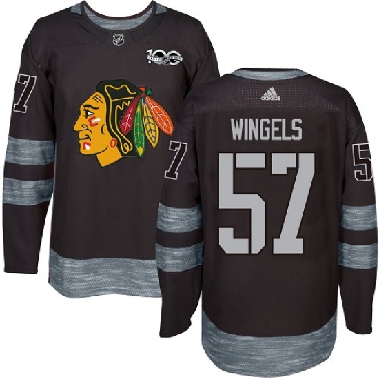 Home>NHL>Chicago Blackhawks>Tommy Wingels>Men's Adidas Chicago Blackhawks #57 Tommy Wingels Authentic Black 1917-2017 100th Anniversary NHL Jersey