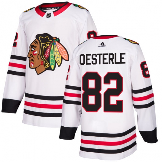 Home>NHL>Chicago Blackhawks>Jordan Oesterle>Men's Adidas Chicago Blackhawks #82 Jordan Oesterle Authentic White Away NHL Jersey
