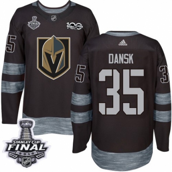 Men's Adidas Vegas Golden Knights #35 Oscar Dansk Authentic Black 1917-2017 100th Anniversary 2018 Stanley Cup Final NHL Jersey
