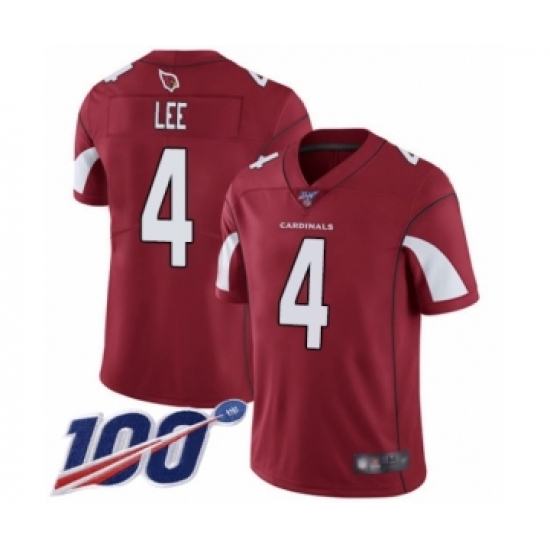 >Men's Arizona Cardinals #4 Andy Lee Red Team Color Vapor Untouchable Limited Player 100th Season Football Jersey