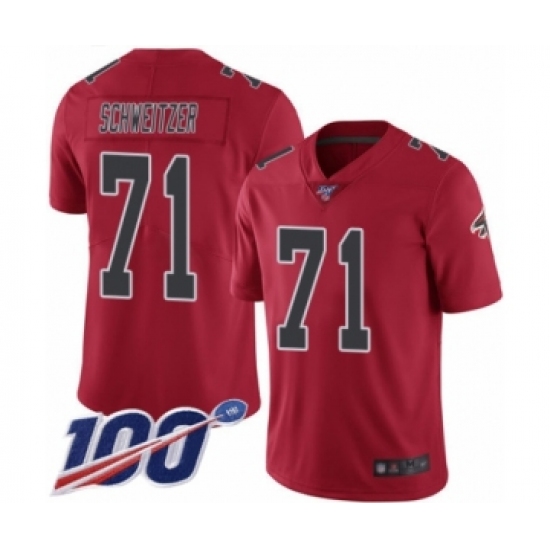 >Men's Atlanta Falcons #71 Wes Schweitzer Limited Red Rush Vapor Untouchable 100th Season Football Jersey