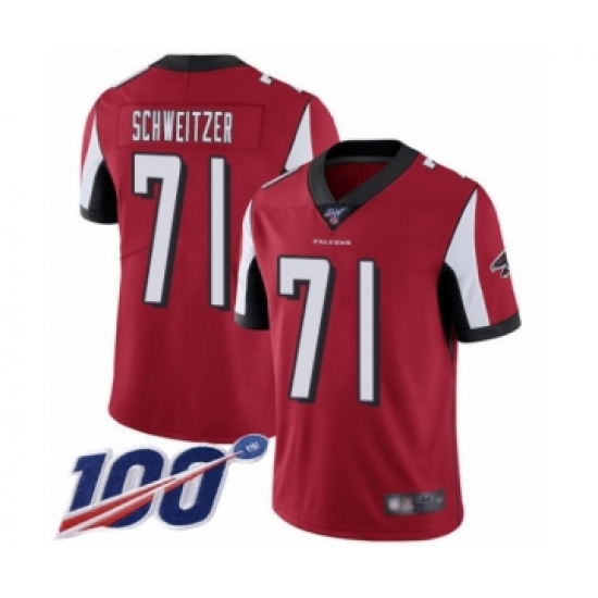 Men's Atlanta Falcons #71 Wes Schweitzer Red Team Color Vapor Untouchable Limited Player 100th Season Football Jersey