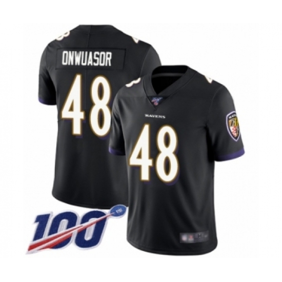 >Men's Baltimore Ravens #48 Patrick Onwuasor Black Alternate Vapor Untouchable Limited Player 100th Season Football Jersey