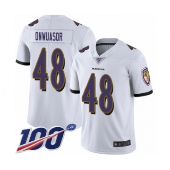 >Men's Baltimore Ravens #48 Patrick Onwuasor White Vapor Untouchable Limited Player 100th Season Football Jersey