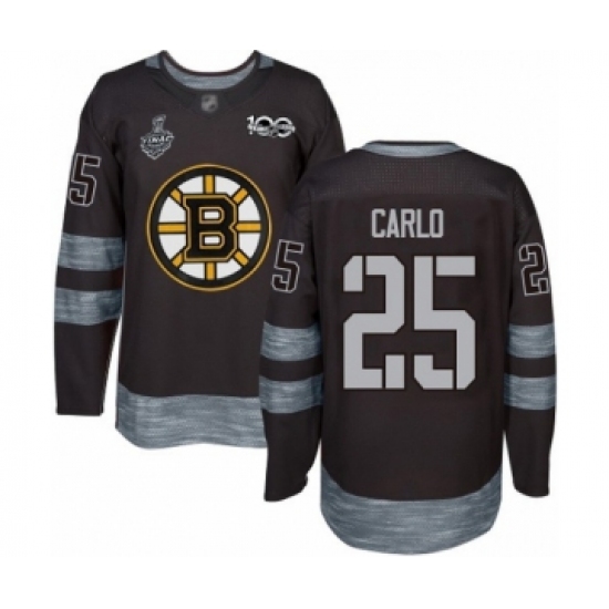 Men's Boston Bruins #25 Brandon Carlo Authentic Black 1917-2017 100th Anniversary 2019 Stanley Cup Final Bound Hockey Jersey