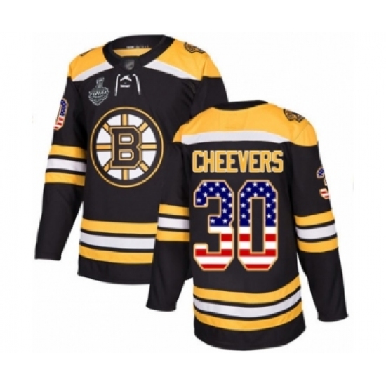 Men's Boston Bruins #30 Gerry Cheevers Authentic Black USA Flag Fashion 2019 Stanley Cup Final Bound Hockey Jersey