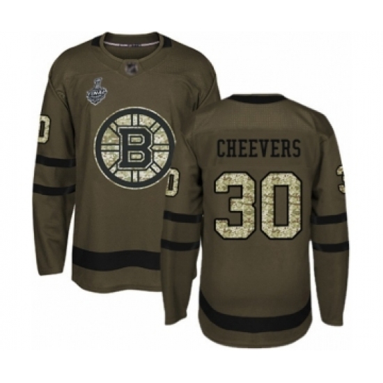 >Men's Boston Bruins #30 Gerry Cheevers Authentic Green Salute to Service 2019 Stanley Cup Final Bound Hockey Jersey