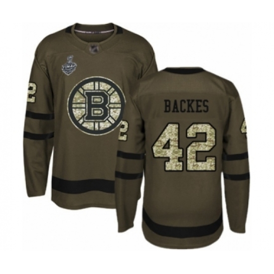 Men's Boston Bruins #42 David Backes Authentic Green Salute to Service 2019 Stanley Cup Final Bound Hockey Jersey