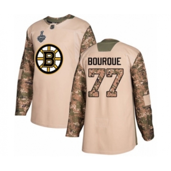 >Men's Boston Bruins #77 Ray Bourque Authentic Camo Veterans Day Practice 2019 Stanley Cup Final Bound Hockey Jersey
