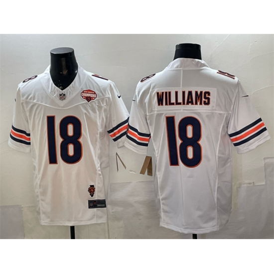 Men's Chicago Bears #18 Caleb Williams White F.U.S.E. 2025 NFC North Champions & Illinois Stitched Football Jersey