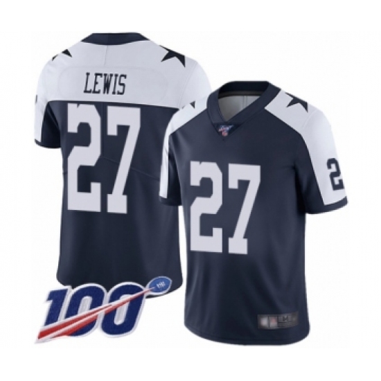 >Men's Dallas Cowboys #27 Jourdan Lewis Navy Blue Throwback Alternate Vapor Untouchable Limited Player 100th Season Football Jersey
