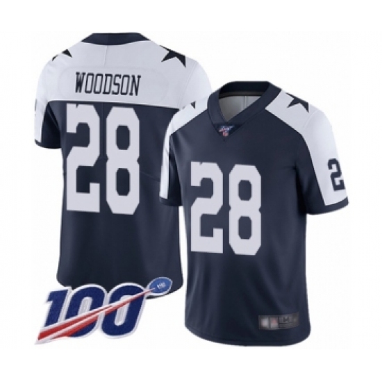 Men's Dallas Cowboys #28 Darren Woodson Navy Blue Throwback Alternate Vapor Untouchable Limited Player 100th Season Football Jersey