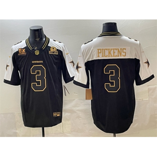 >Men's Dallas Cowboys #3 George pickens Black Gold 2025 F.U.S.E. With 5x Super Bowl Champions & Established In 1960 Vapor Limited Stitched Football Jersey