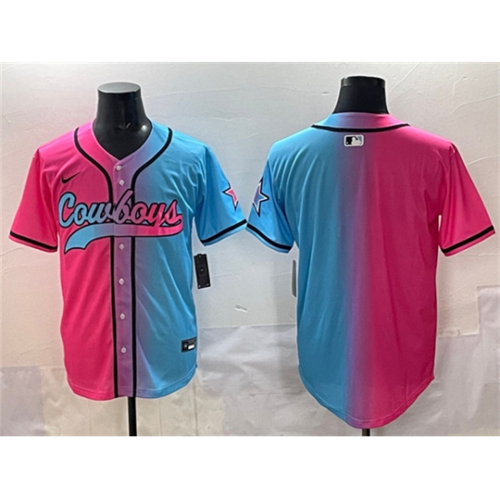 Men's Dallas Cowboys Blank Pink Blue Limited Stitched Baseball Jersey