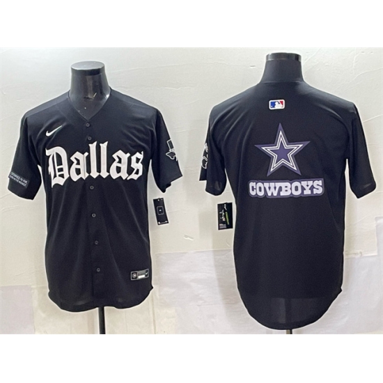 Men's Dallas Cowboys Team Big Logo Black 'Gothic Lone Star Edition' Limited Stitched Baseball Jersey