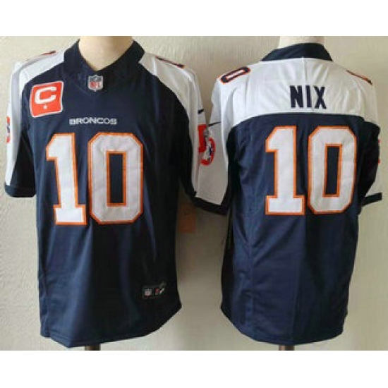 Men's Denver Broncos #10 Bo Nix Navy Blue C Thanksgiving FUSE Vapor Jersey