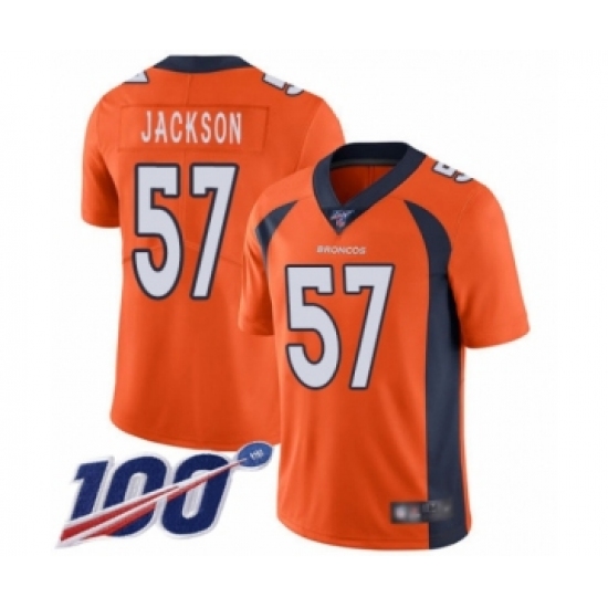 >Men's Denver Broncos #57 Tom Jackson Orange Team Color Vapor Untouchable Limited Player 100th Season Football Jersey