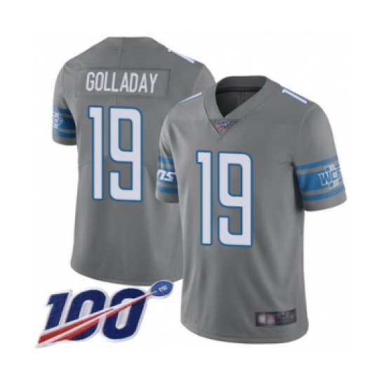 >Men's Detroit Lions #19 Kenny Golladay Limited Steel Rush Vapor Untouchable 100th Season Football Jersey