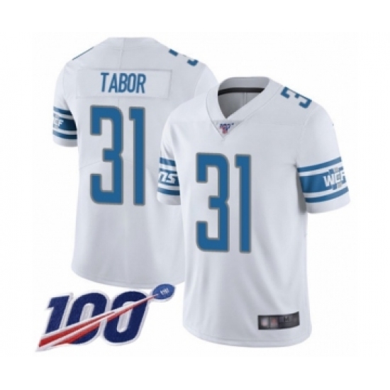 Men's Detroit Lions #31 Teez Tabor White Vapor Untouchable Limited Player 100th Season Football Jersey