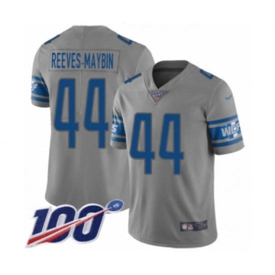>Men's Detroit Lions #44 Jalen Reeves-Maybin Limited Gray Inverted Legend 100th Season Football Jersey