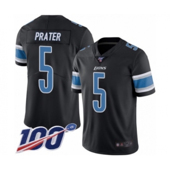 >Men's Detroit Lions #5 Matt Prater Limited Black Rush Vapor Untouchable 100th Season Football Jersey