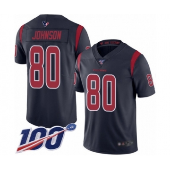 >Men's Houston Texans #80 Andre Johnson Limited Navy Blue Rush Vapor Untouchable 100th Season Football Jersey