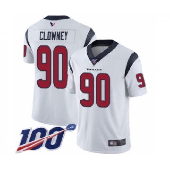 >Men's Houston Texans #90 Jadeveon Clowney White Vapor Untouchable Limited Player 100th Season Football Jersey