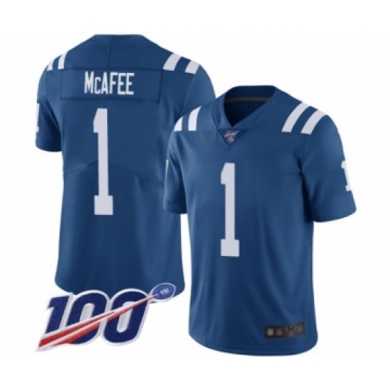 Men's Indianapolis Colts #1 Pat McAfee Royal Blue Team Color Vapor Untouchable Limited Player 100th Season Football Jersey