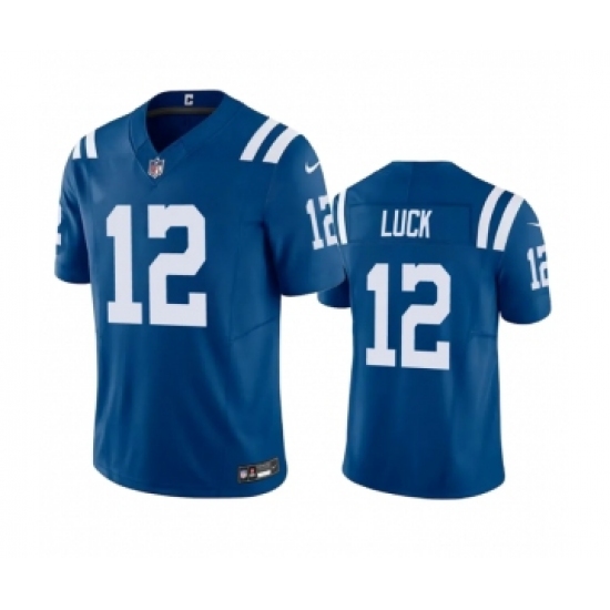 >Men's Indianapolis Colts #12 Andrew Luck Blue 2023 F.U.S.E Vapor Untouchable Stitched Football Jersey