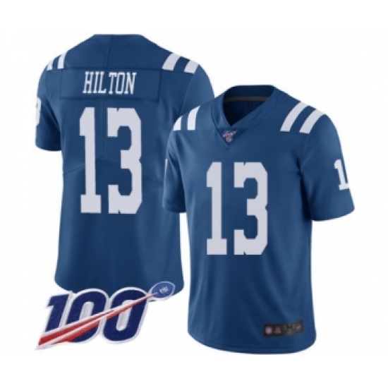 Men's Indianapolis Colts #13 T.Y. Hilton Limited Royal Blue Rush Vapor Untouchable 100th Season Football Jersey