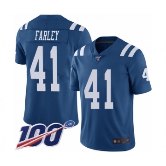 Men's Indianapolis Colts #41 Matthias Farley Limited Royal Blue Rush Vapor Untouchable 100th Season Football Jersey