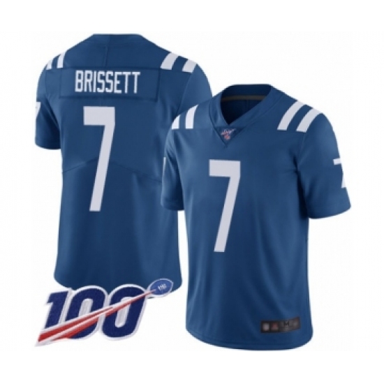 Men's Indianapolis Colts #7 Jacoby Brissett Royal Blue Team Color Vapor Untouchable Limited Player 100th Season Football Jersey