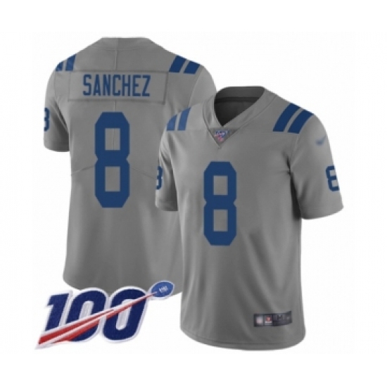 Men's Indianapolis Colts #8 Rigoberto Sanchez Limited Gray Inverted Legend 100th Season Football Jersey