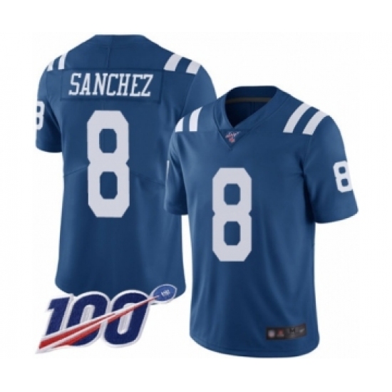 Men's Indianapolis Colts #8 Rigoberto Sanchez Limited Royal Blue Rush Vapor Untouchable 100th Season Football Jersey