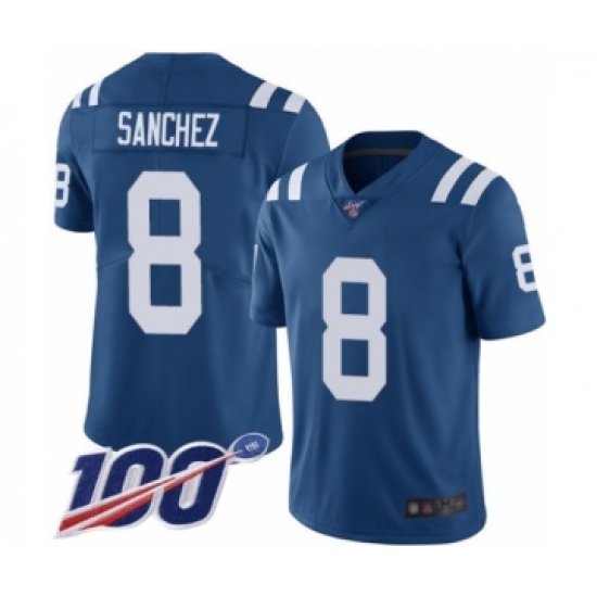 Men's Indianapolis Colts #8 Rigoberto Sanchez Royal Blue Team Color Vapor Untouchable Limited Player 100th Season Football Jersey