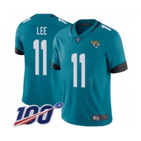 >Men's Jacksonville Jaguars #11 Marqise Lee Teal Green Alternate Vapor Untouchable Limited Player 100th Season Football Jersey