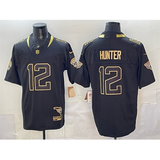 Men's Jacksonville Jaguars #12 Travis Hunter Black Gold 2025 F.U.S.E. With Vapor Untouchable Limited Stitched Jersey