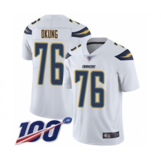 >Men's Los Angeles Chargers #76 Russell Okung White Vapor Untouchable Limited Player 100th Season Football Jersey