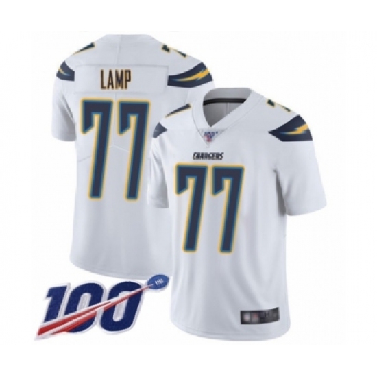>Men's Los Angeles Chargers #77 Forrest Lamp White Vapor Untouchable Limited Player 100th Season Football Jersey