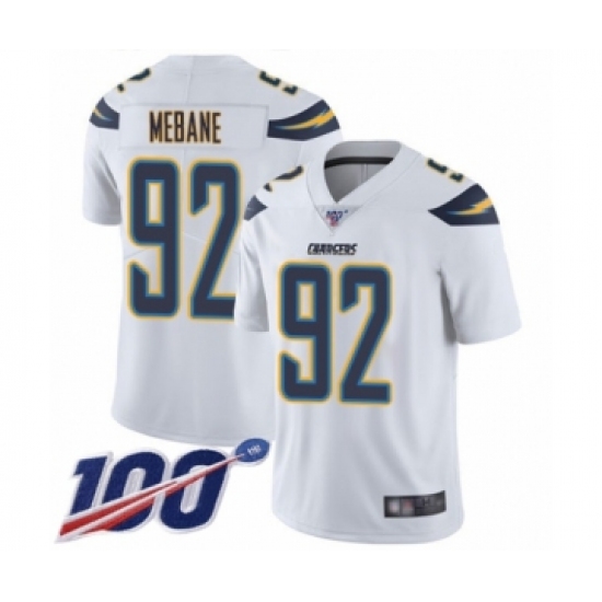 Men's Los Angeles Chargers #92 Brandon Mebane White Vapor Untouchable Limited Player 100th Season Football Jersey