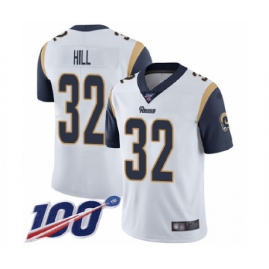 >Men's Los Angeles Rams #32 Troy Hill White Vapor Untouchable Limited Player 100th Season Football Jersey