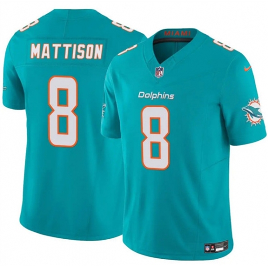 >Men's Miami Dolphins #8 Alexander Mattison Aqua 2025 F.U.S.E. Vapor Limited Football Stitched Jersey