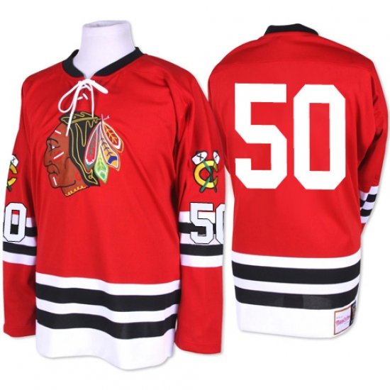 Home>NHL>Chicago Blackhawks>Corey Crawford>Men's Mitchell and Ness Chicago Blackhawks #50 Corey Crawford Premier Red 1960-61 Throwback NHL Jersey