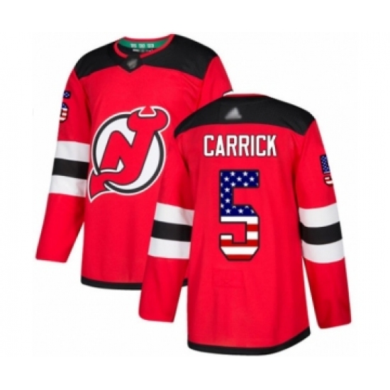 Men's New Jersey Devils #5 Connor Carrick Authentic Red USA Flag Fashion Hockey Jersey