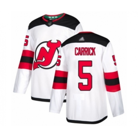 Men's New Jersey Devils #5 Connor Carrick Authentic White Away Hockey Jersey