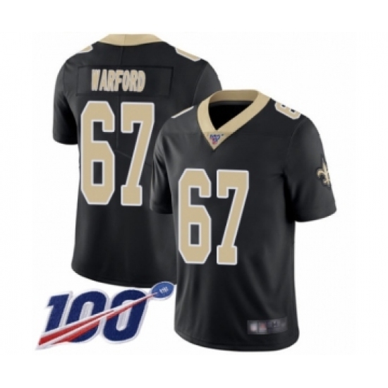 Men's New Orleans Saints #67 Larry Warford Black Team Color Vapor Untouchable Limited Player 100th Season Football Jersey