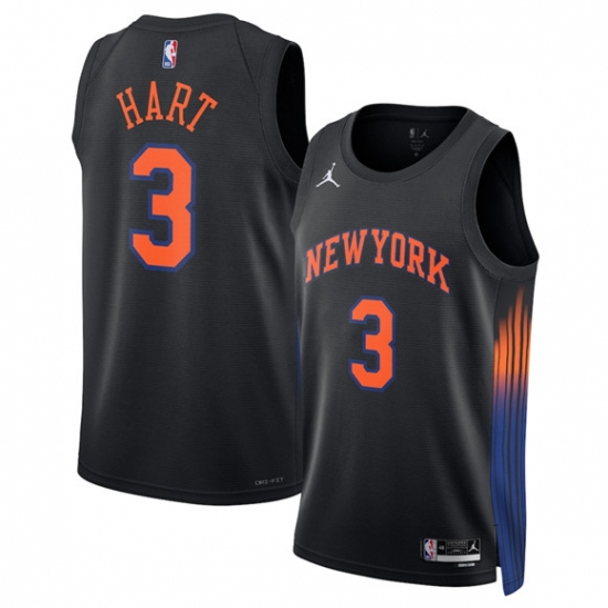 Men's New Yok Knicks #3 Josh Hart Black 2025 Statement Edition Stitched Basketball Jersey