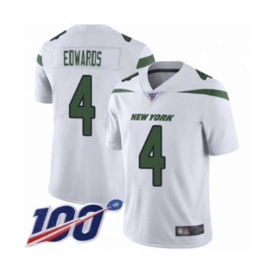 >Men's New York Jets #4 Lac Edwards White Vapor Untouchable Limited Player 100th Season Football Jersey