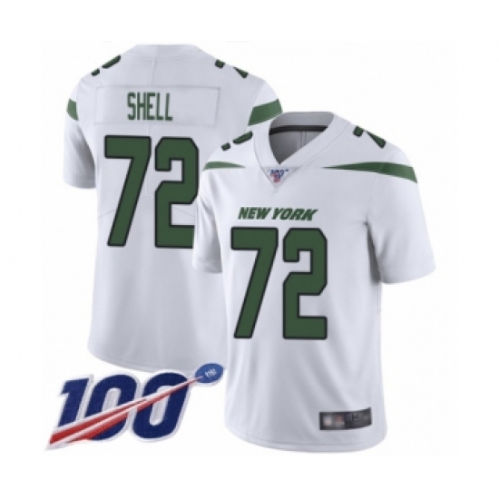 Men's New York Jets #72 Brandon Shell White Vapor Untouchable Limited Player 100th Season Football Jersey
